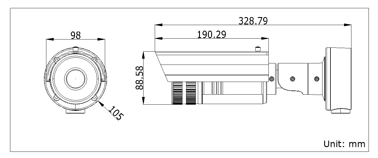 *“-S”表示具有1 對麥克風音頻輸入/輸出接口、1 對報警輸入/輸出接口和1 個RS-485接口 *“-Z”表示配備電動變焦鏡頭 |